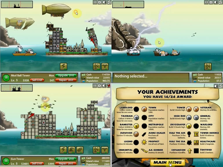 Develop and defend your island through the ages. Upgrade your weapons and call upon powerful acts of god to vanquish the invading army.
